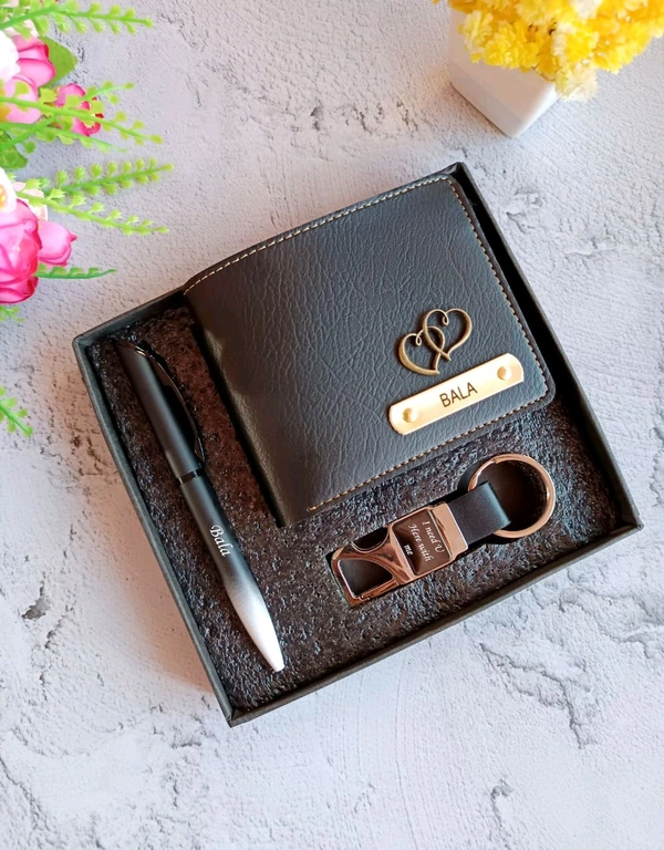 3 In 1 Nexon Wallet + Pen + Hook Keychain Combo BLACK Color