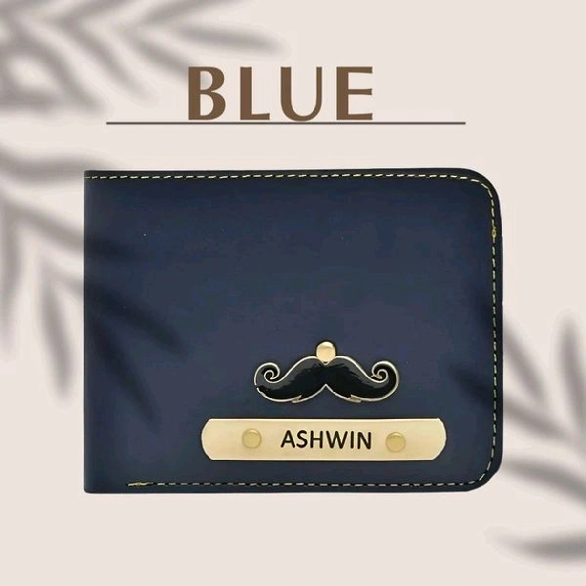 Men's Personalized Wallet BLUE COLOR , Customized Slim Stylish Leather Purse with Name & Charm , Unique Birthday Anniversary Gift for Men Boy Love Husband Employees Clients