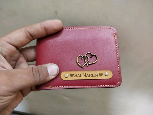 Men's Personalized Wallet WINE RED COLOR , Customized Slim Stylish Leather Purse with Name & Charm , Unique Birthday Anniversary Gift for Men Boy Love Husband Employees Clients