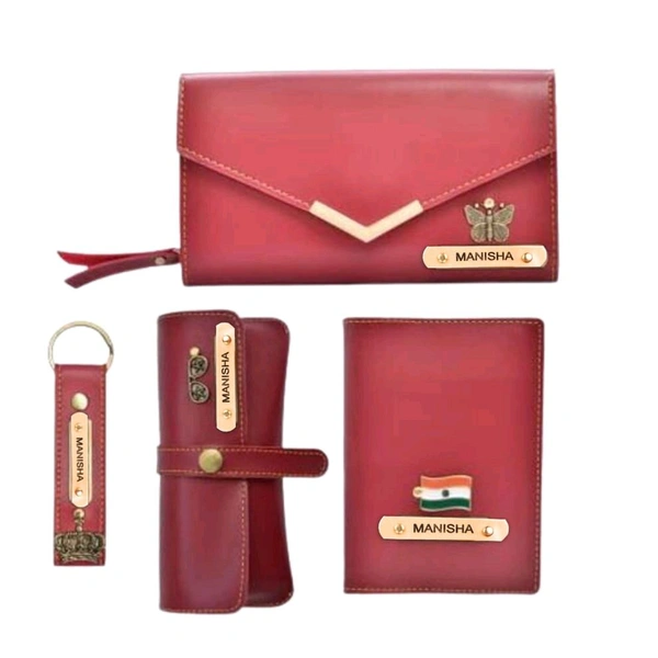 Package Content: 1 Personalized Clutch, 1 Specs Cover, 1 Passport Cover, 1 Keychain